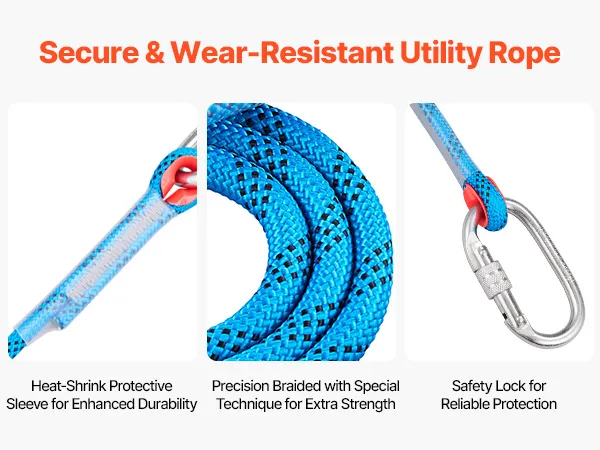 Il kit di punte da arrampicata è dotato di una corda di servizio durevole, progettata per garantire resistenza e resistenza all'usura. Offre una protezione affidabile contro le cadute e un supporto stabile, rendendo più sicuri i lavori di potatura degli alberi, raccolta della frutta.