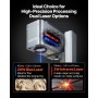 Incisione di precisione a doppio laser: Il laser blu da 20 W offre un punto di incisione di 0,01 x 0,01 mm per linee sottili e bordi lisci, mentre il laser a infrarossi da 2 W offre maggiore versatilità nella lavorazione dei materiali