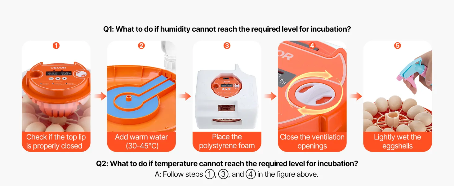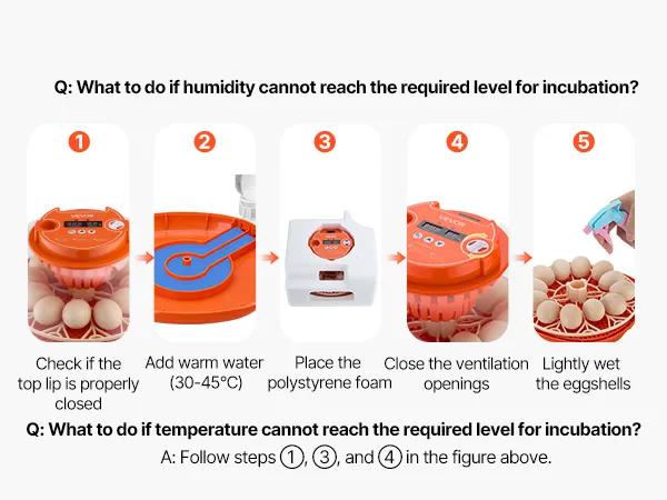 D2: Quali sono le precauzioni da prendere per la schiusa? A2: 1. Mettere la macchina nella schiuma se la temperatura ambiente è inferiore a 20°C/68°F per una migliore conservazione al caldo. 2. Non aprire frequentemente il coperchio durante l'incubazione, poiché ciò seccherà il guscio d'uovo intatto e renderà difficile romperlo. D3: Quali sono le precauzioni da prendere per la speratura delle uova? A3: 1. Abbassare l'illuminazione della stanza per facilitare l'osservazione. Prestare attenzione a evitare vibrazioni o rotazioni eccessive durante la speratura delle uova, che potrebbero causare la morte degli embrioni per stress. 2. Poiché la temperatura ambiente è inferiore a quella dell'incubatrice, completare la speratura delle uova il prima possibile.