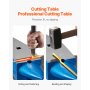 VEVOR blacksmith anvil with blue base and steel top, side view.