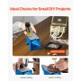 VEVOR blacksmith anvil in blue with dimensions 13.9in x 6.1in x 6.3in shown.