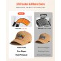 Compatibile con vari tipi di cappelli: La pressa a caldo è dotata di quattro piastre (15 x 7,6 cm, 16,7 x 6,9 cm, 16,7 x 9,8 cm e 20 x 9 cm), compatibili con diverse forme e dimensioni di cappelli. Consente un posizionamento preciso del design, ideale per progetti fai da te