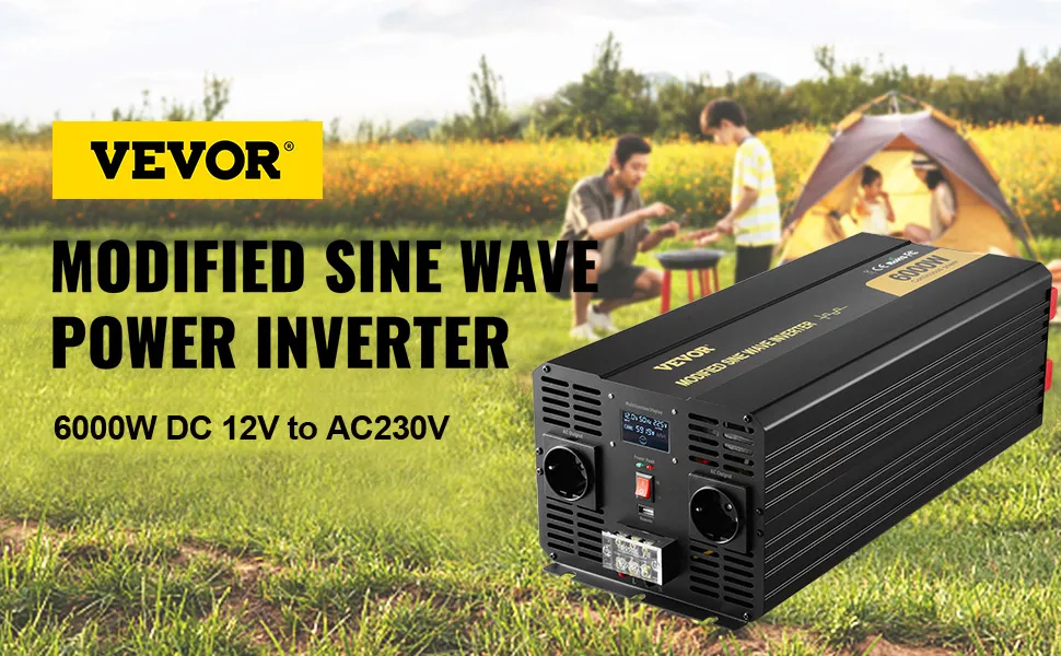 Questo inverter a onda sinusoidale modificata è dotato di un guscio in lega di alluminio, schermo LCD, indicatore LED, ventola di raffreddamento intelligente e molteplici misure di protezione. Il nostro inverter di potenza trasforma la corrente continua in corrente alternata, ampiamente utilizzata per emergenze, campeggio, auto, casa, camper, solare. Inoltre, è adatto per alimentare dispositivi più grandi come elettrodomestici, utensili elettrici, come frullatori, frigoriferi, ecc.