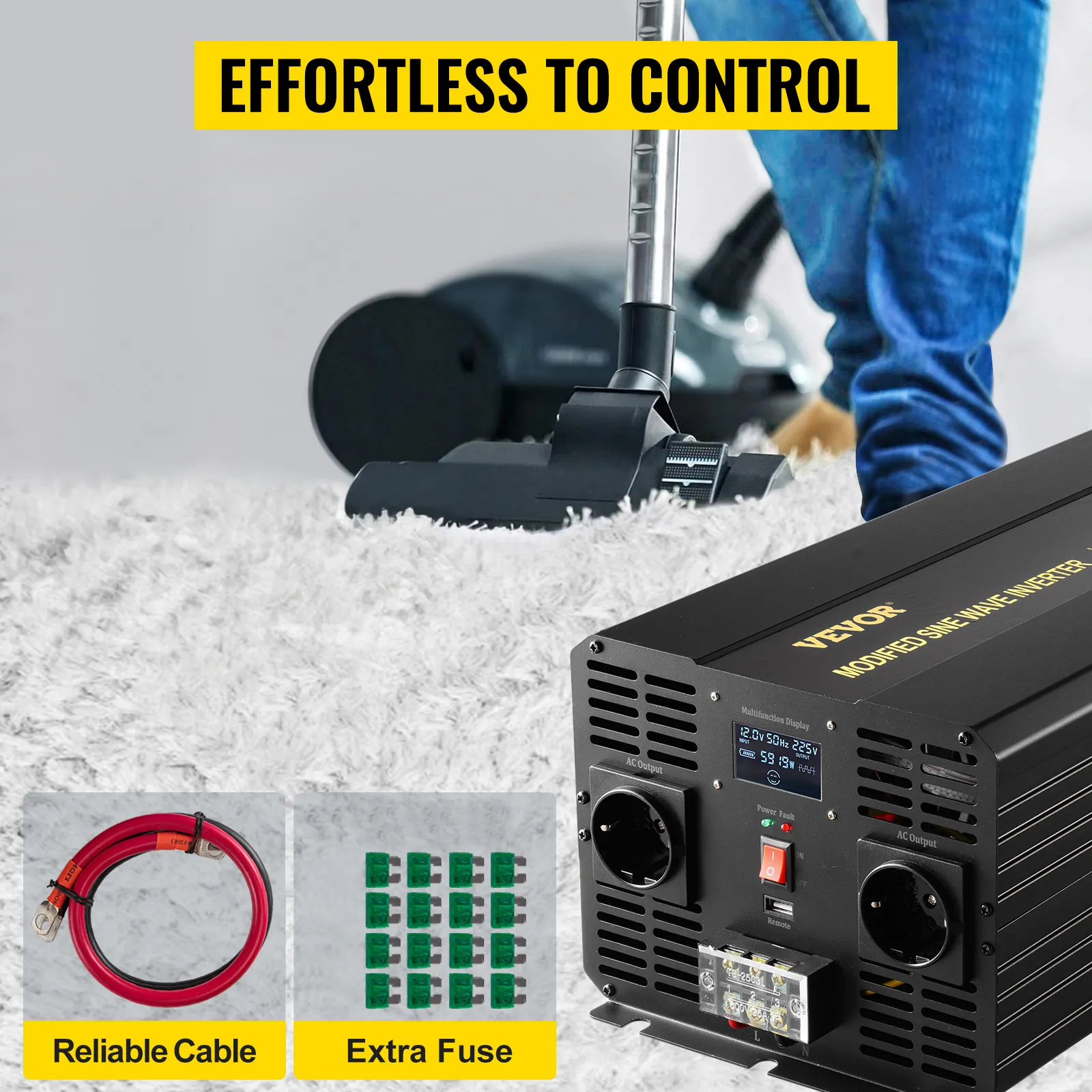 Il cavo lungo 50 cm e i fusibili controllano accuratamente il convertitore CA/CC nella stanza e in un'area aperta.