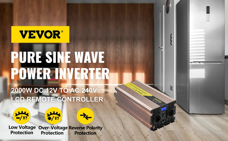 Vevor Invertitore A Onda Sinusoidale Pura 2000w Con 2 Set Di Cavi Per Batteria Vevor Invertitore A Onda Sinusoidale Pura 2000w Con 2 Set Di Cavi Per Batteria