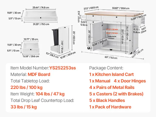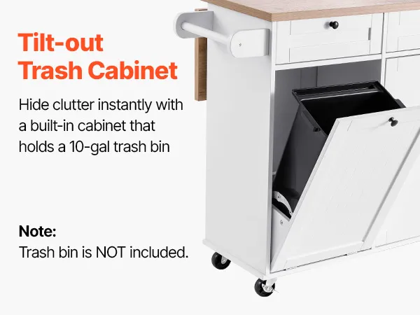 Ampio spazio di archiviazione: l'isola della cucina offre ampio spazio di archiviazione con i suoi cassetti, il mobiletto per la spazzatura (non incluso) e gli scaffali, così puoi riporre facilmente utensili, pentole, asciugamani, posate ed elettrodomestici da cucina