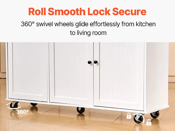 La nostra isola da cucina con spazio di archiviazione è dotata di ruote bloccabili che consentono un facile spostamento e un posizionamento sicuro, adattandosi alla disposizione dinamica della cucina e mantenendo la stabilità durante l'uso.
