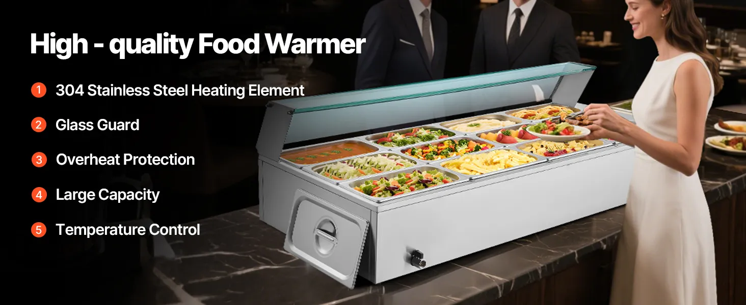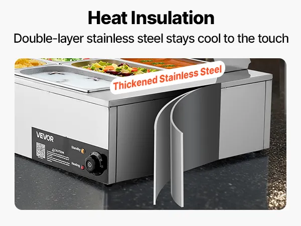Struttura durevole: realizzato in acciaio inossidabile, questo scaldavivande elettrico offre prestazioni costanti di cui ti puoi fidare. Il tubo riscaldante a forma di U in acciaio inossidabile riscalda il cibo in modo uniforme e continua a funzionare bene