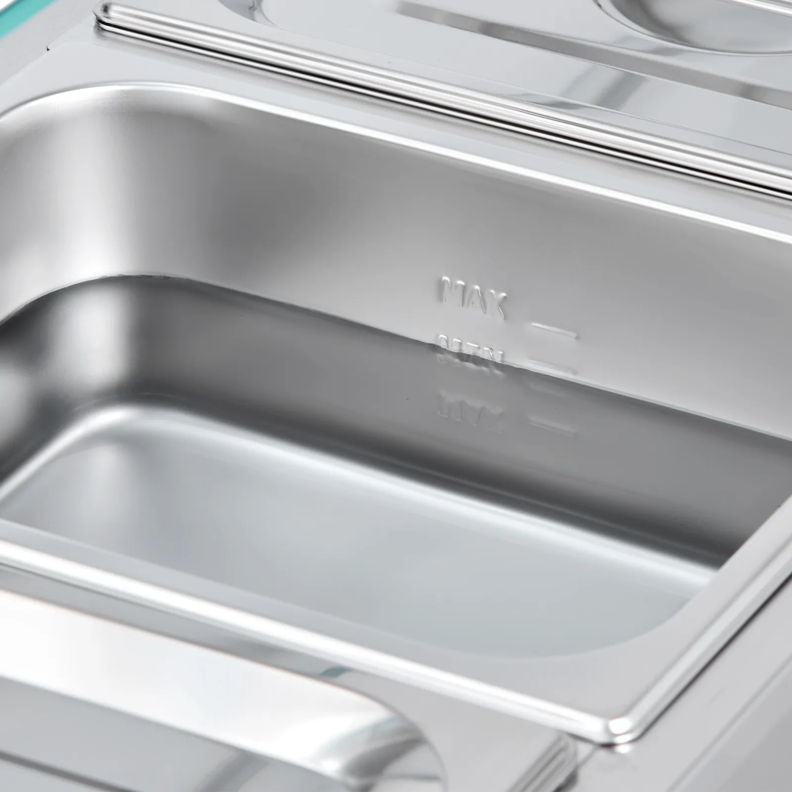 Copertura in vetro trasparente: la copertura in vetro di questo tavolo da cottura a vapore trattiene il calore e l'aria fredda, mostrando al contempo il cibo in modo chiaro. La sua robusta struttura in vetro ha un aspetto elegante e resiste ai graffi