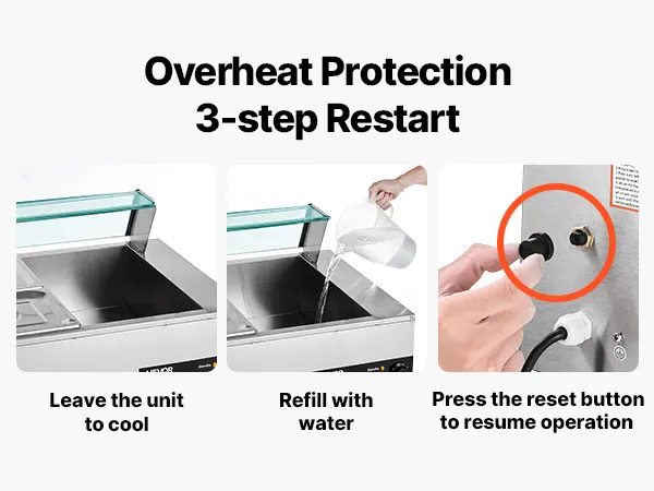 Funzione Smart Stop: quando la temperatura supera i 120 °C (248 °F), lo scaldavivande smette di riscaldare automaticamente. Evitare di versare acqua ghiacciata, che può danneggiare il tubo riscaldante