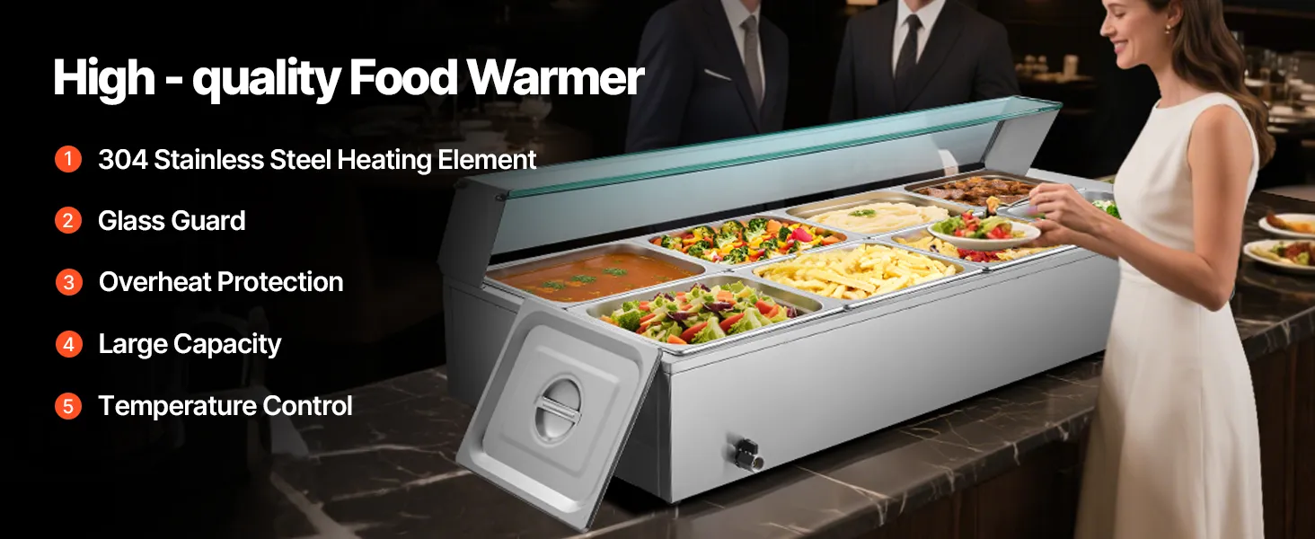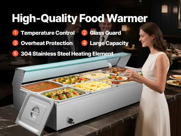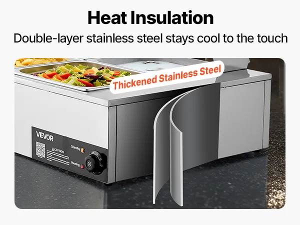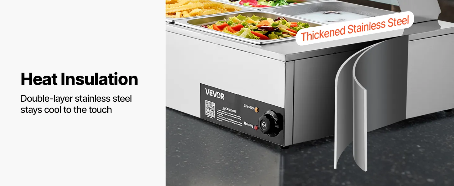 Struttura durevole: realizzato in acciaio inossidabile, questo scaldavivande elettrico offre prestazioni costanti di cui ti puoi fidare. Il tubo riscaldante a forma di U in acciaio inossidabile riscalda il cibo in modo uniforme e continua a funzionare bene