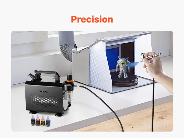 Funzionamento silenzioso: il set aerografo con compressore funziona silenziosamente anche durante l'uso prolungato, consentendoti di concentrarti completamente sulla tua arte