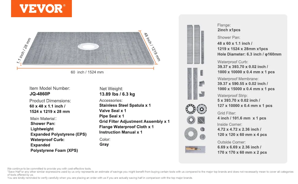 Con il kit per cordolo doccia VEVOR, risparmi tempo e denaro. Il kit include tutto ciò di cui hai bisogno per un'installazione completa della doccia. Questo elimina la necessità di acquistare altri articoli. Un semplice processo di installazione fa risparmiare tempo sul tuo progetto. I prezzi convenienti assicurano un rimborso del denaro speso. Questo kit offre risparmi significativi rispetto ai kit della concorrenza. Puoi ottenere una finitura di alta qualità senza spendere troppo. Il tempo e il denaro risparmiati lo rendono adatto a qualsiasi ristrutturazione del bagno. Investire in questo kit significa ottenere efficienza e convenienza in un unico pacchetto.