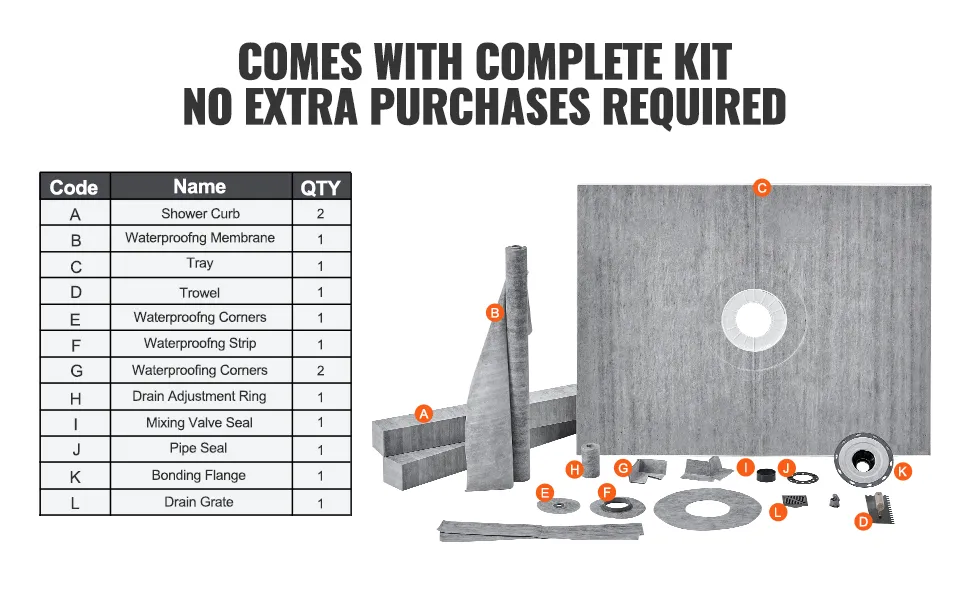 Puoi affidarti a VEVOR per una consegna rapida e un servizio clienti eccellente. Quando ordini il kit per cordolo doccia, puoi aspettarti una consegna puntuale. Questo assicura che il tuo progetto rispetti i tempi previsti. L'assistenza clienti di VEVOR è reattiva e disponibile. Sono pronti a rispondere a qualsiasi domanda o preoccupazione. Questo impegno per la soddisfazione del cliente rende VEVOR una scelta affidabile. Dovresti contare su una spedizione rapida e un supporto affidabile durante tutto il processo di installazione. Garantisce un'esperienza di installazione fluida e senza stress. La dedizione di VEVOR al servizio clienti li distingue dalla concorrenza.
