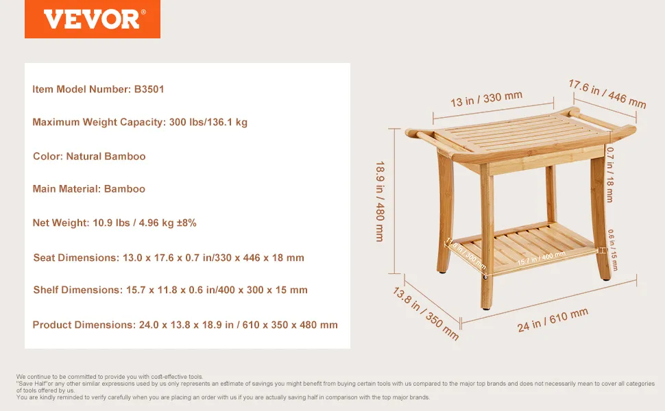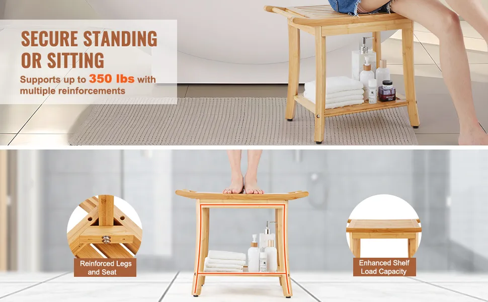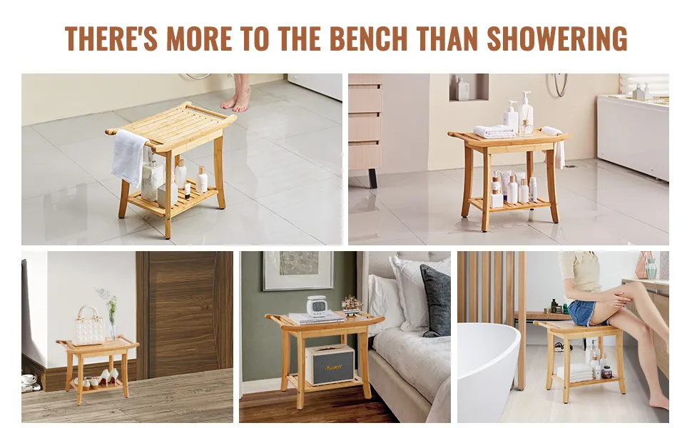 Cerchi un organizzatore per il bagno o un sedile per doccia affidabile? Non cercare oltre la nostra panca doccia impermeabile in bambù. Costruito resistente con struttura a doppio strato, può contenere fino a 300 libbre/136,1 kg.