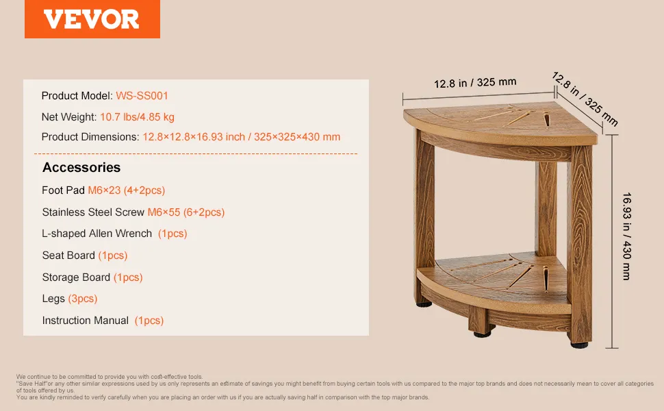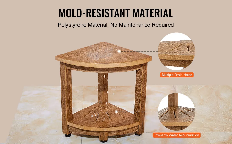 È sia elegante che accattivante. Il design in finto legno della panca angolare per doccia VEVOR completa qualsiasi arredamento del bagno, aggiungendo un tocco di classe. Questo materiale plastico impermeabile assicura che mantenga la sua bellezza senza bisogno di vernice o manutenzione. È sia funzionale che esteticamente gradevole. Si distingue come un'aggiunta di stile al tuo spazio doccia. Che il tuo bagno abbia un aspetto moderno in legno o uno stile tradizionale, questa panca si adatterà perfettamente. Ottieni l'aspetto del legno senza problemi, rendendolo un'opzione conveniente per qualsiasi casa.