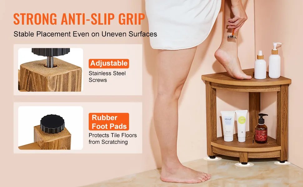 Una caratteristica distintiva di questa panca da bagno sono i piedini regolabili in gomma nella parte inferiore dello sgabello. Possono adattarsi facilmente a superfici irregolari, assicurando che la panca rimanga in piano. Questi piedini hanno anche una maggiore presa, impedendo graffi sui pavimenti piastrellati. Le viti in acciaio inossidabile assicurano una maggiore durata della panca. Ciò la rende ideale per vari ambienti, dai bagni alle docce esterne. La funzione antiscivolo offre tranquillità. Non oscillerai o ti muoverai inaspettatamente. Rimarrà saldamente in posizione. Usalo con sicurezza, sapendo che rimarrà saldamente in posizione.