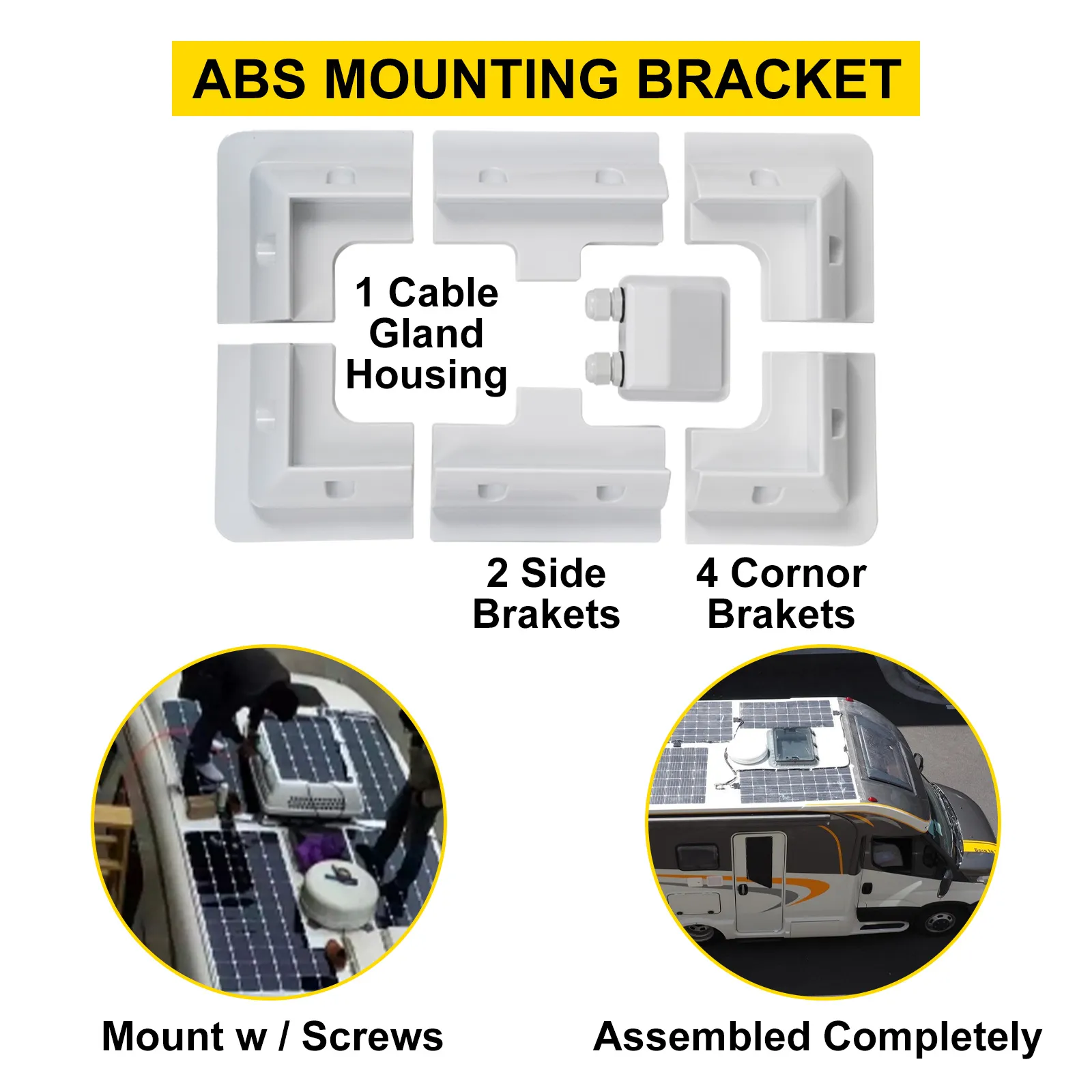Il kit di ricarica della batteria solare viene fornito con staffe di montaggio in ABS, comprese 4 staffe angolari, 2 staffe laterali e 1 alloggiamento per pressacavi per fissare i pannelli in modo semplice e stabile.