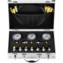 It contains 3 gauges, 3 test hoses, and 9 test couplings, all neatly stored in the case. Extensive measurement options: 0-3500 PSI, 0-5800 PSI, and 0-8600 PSI. The gauges deliver accurate readings in psi and bar units for a wide range of applications.