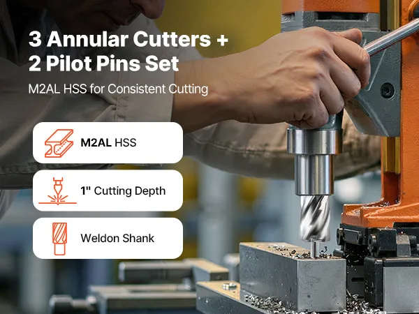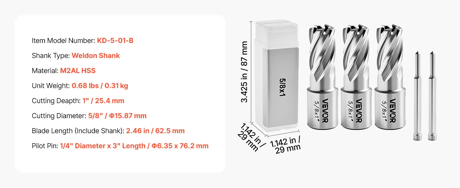 • Attacco Weldon da 3/4 di pollice per un'ampia compatibilità: Queste frese a corona sono dotate di attacco Weldon standard da 3/4 di pollice e sono compatibili con la maggior parte dei trapani magnetici con mandrino Weldon