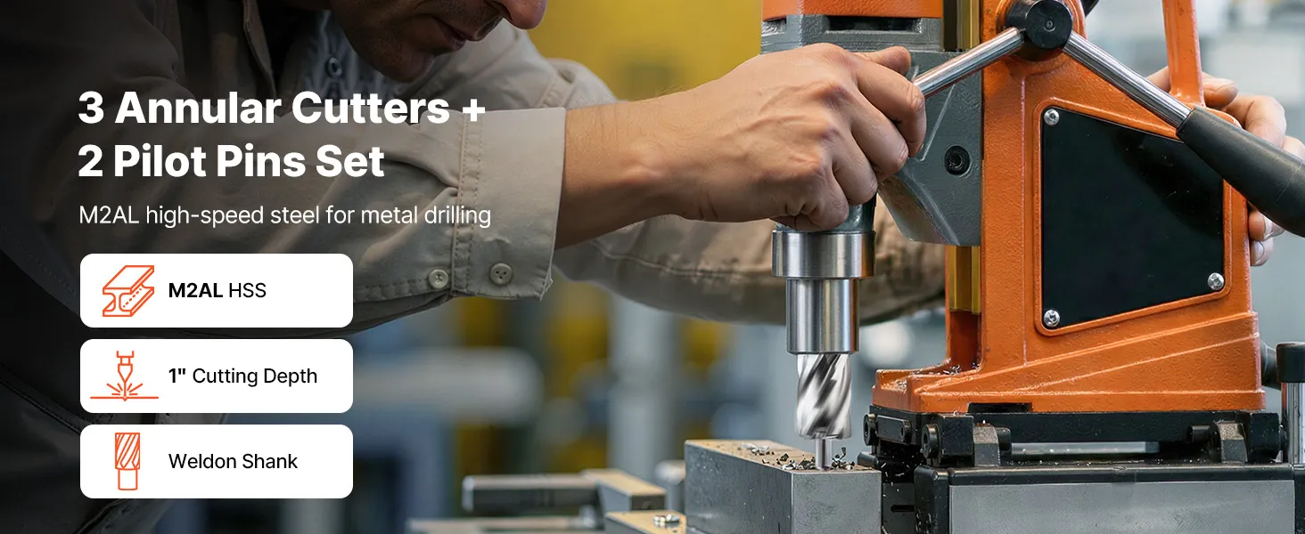VEVOR Set di Punte per Trapano HSS 5 pezzi, Set Punte per Albero di Trapano Magnetico Diametro di Taglio 15,9 mm con 2 Perni di Centraggio Profondità di Taglio 25,4 mm Acciaio Rapido M2AL VEVOR Set di Punte per Trapano HSS 5 pezzi, Set Punte per Albero di Trapano Magnetico Diametro di Taglio 15,9 mm con 2 Perni di Centraggio Profondità di Taglio 25,4 mm Acciaio Rapido M2AL