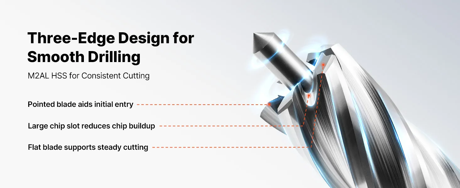 La geometria del tagliente e il flusso dei trucioli di queste punte ad anello sono progettati per consentire una foratura uniforme nel metallo.