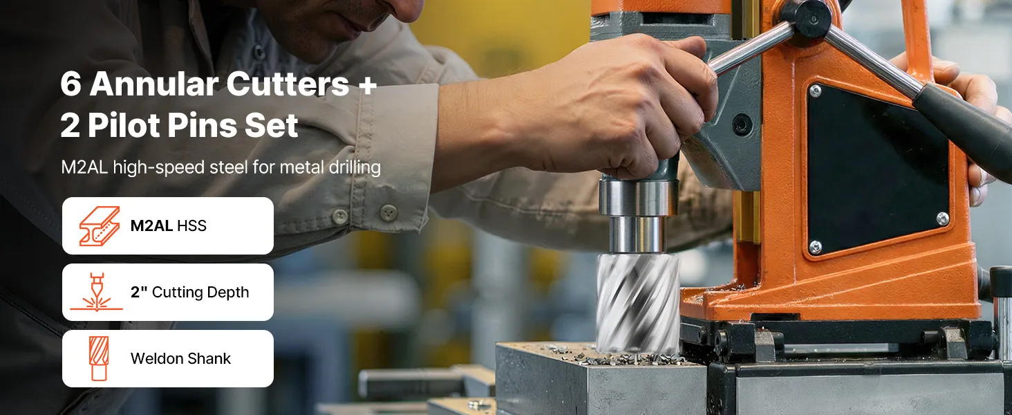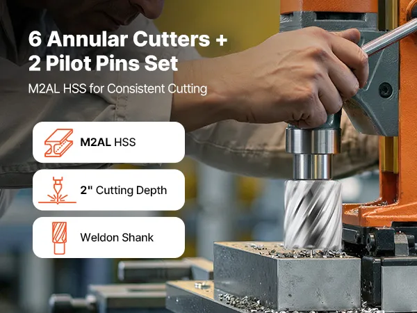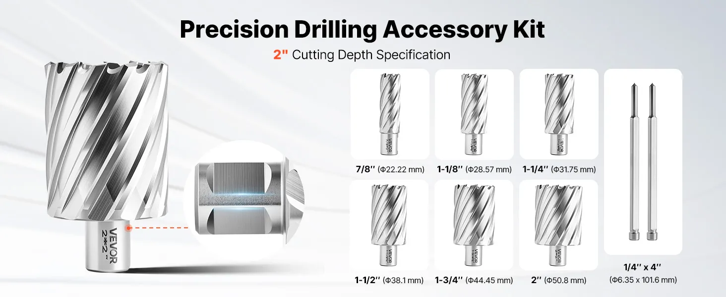 Attacco Weldon da 3/4 di pollice per un'ampia compatibilità: Queste punte ad anello sono dotate di attacco Weldon standard da 3/4 di pollice e sono compatibili con la maggior parte dei trapani magnetici con mandrino Weldon