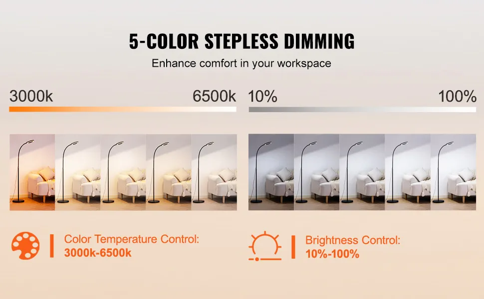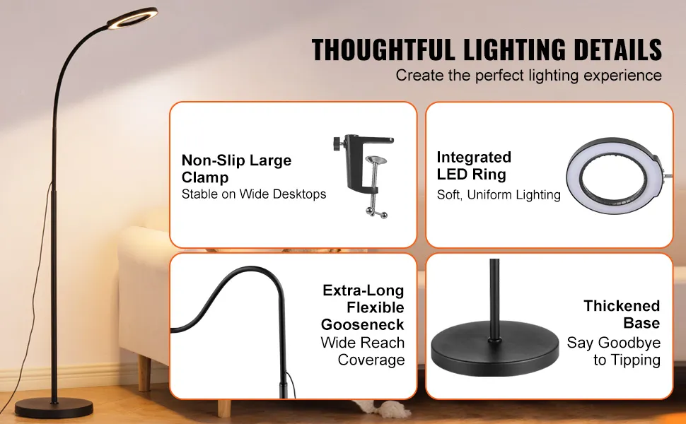 Il palo di supporto offre una regolazione dell'altezza a 3 livelli, consentendo di utilizzarlo come lampada da terra alta o bassa o come lampada da scrivania. Puoi fissare la lampada alla scrivania per risparmiare prezioso spazio di lavoro.