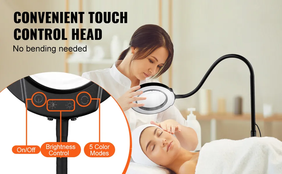 La nostra lampada da terra con ingrandimento rivela dettagli fini, migliorando la precisione per compiti come l'ispezione di componenti elettronici, la valutazione di gioielli e la conduzione di osservazioni mediche. L'ingrandimento 5x aiuta a identificare piccoli difetti o caratteristiche.