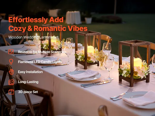La lanterna in legno per matrimoni offre tutto il necessario in un unico set. Include 30 elementi decorativi in una combinazione, consentendo una comoda installazione. Con un design senza fiamma per la sicurezza, è adatta in vari scenari, come matrimoni e festival.