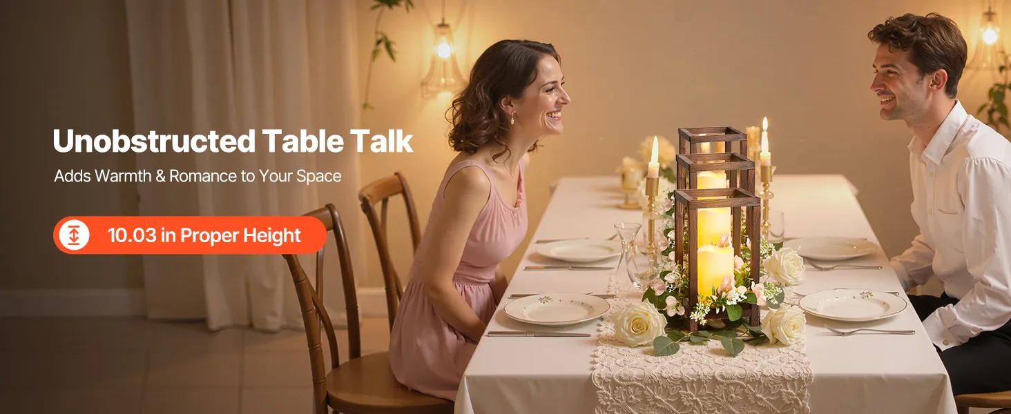 Per molteplici scenari: la nostra lanterna centrale è compatta e può essere posizionata su tavoli da pranzo, reception, librerie, mobili TV e comodini. Ideale per matrimoni, cene di famiglia o feste come San Valentino, Natale
