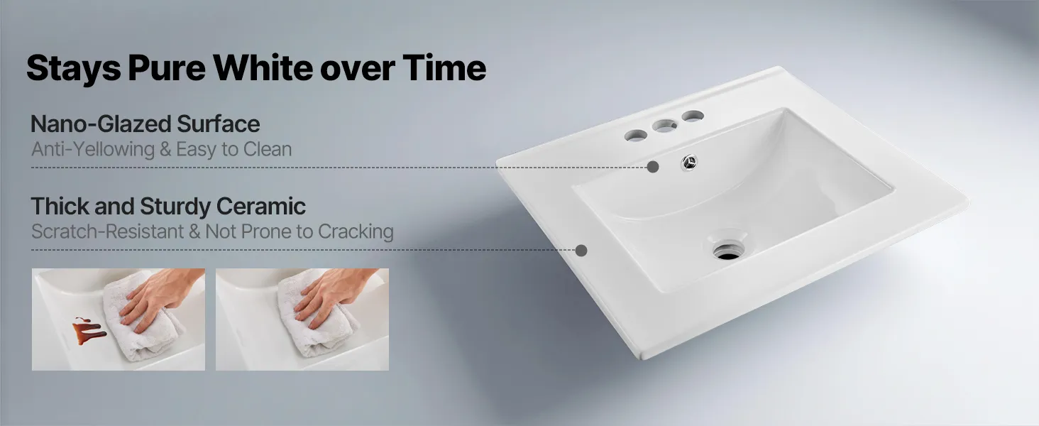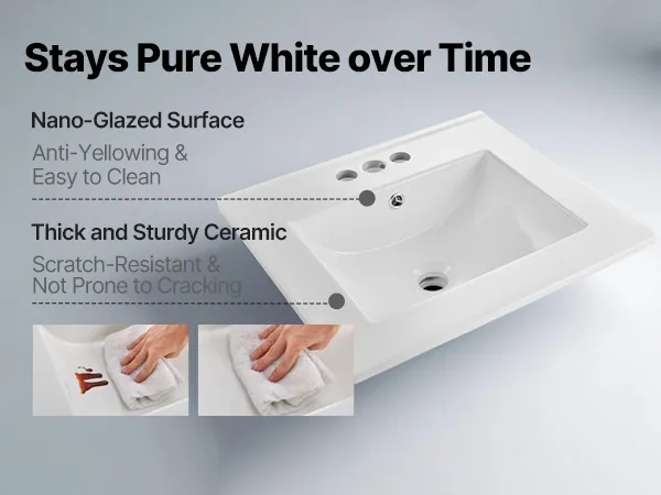 Smalto antimacchia: il lavello in ceramica presenta una superficie liscia e nano-smaltata che resiste all'ingiallimento e ai graffi. La superficie senza giunture riduce l'accumulo di sporco, facilita la pulizia