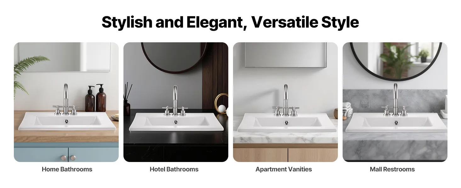 Il nostro lavello da incasso vanta un aspetto elegante e raffinato e si adatta perfettamente a qualsiasi spazio, dai piccoli appartamenti e hotel alle case di lusso e ai centri commerciali. Aggiunge un tocco di raffinatezza a una varietà di stili abitativi.