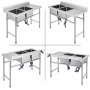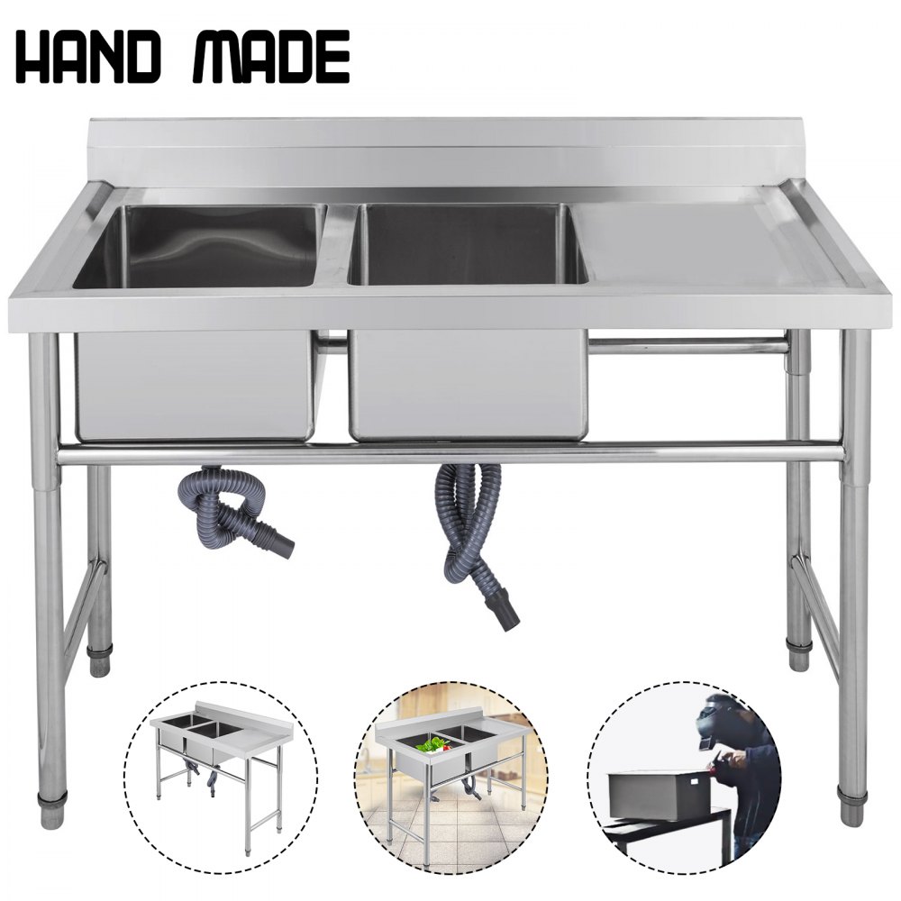 Con due lavelli profondi in questo lavello multiuso in acciaio inossidabile con gambe, più persone possono utilizzarlo contemporaneamente.
