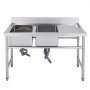 Ti offriamo un lavello in acciaio inossidabile di qualità superiore con 2 compartimenti e una piattaforma sul lato destro. Il lavandino è dotato di gambe in acciaio inossidabile con una traversa per un sostegno sicuro. Inoltre, le vasche sotto la vasca extra saldate sono per la longevità. È il lavello perfetto e il lavello di preparazione per l'uso in qualsiasi cucina, bar, ristorante, lavanderia, stanza da pulizia, caffetteria, garage o altri ambienti commerciali.