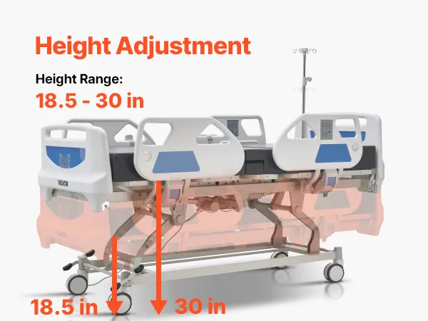 Sistema motorizzato di qualità superiore: il nostro letto ospedaliero elettrico utilizza un attuatore e un sistema di controllo di alta qualità per regolazioni fluide e silenziose. Pazienti o operatori sanitari possono regolare facilmente la posizione del letto utilizzando il telecomando o il pannello di controllo infermieristico
