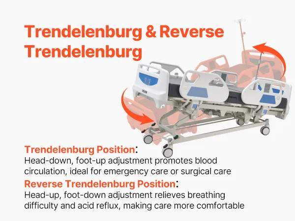 Questo letto ospedaliero elettrico combina una regolazione fluida a 5 funzioni, una posizione di sedia cardiaca, una funzione di rianimazione cardiopolmonare, un sistema di chiusura centralizzata, un materasso in schiuma ad alta densità da 15 cm e una capacità di carico di 250 kg.