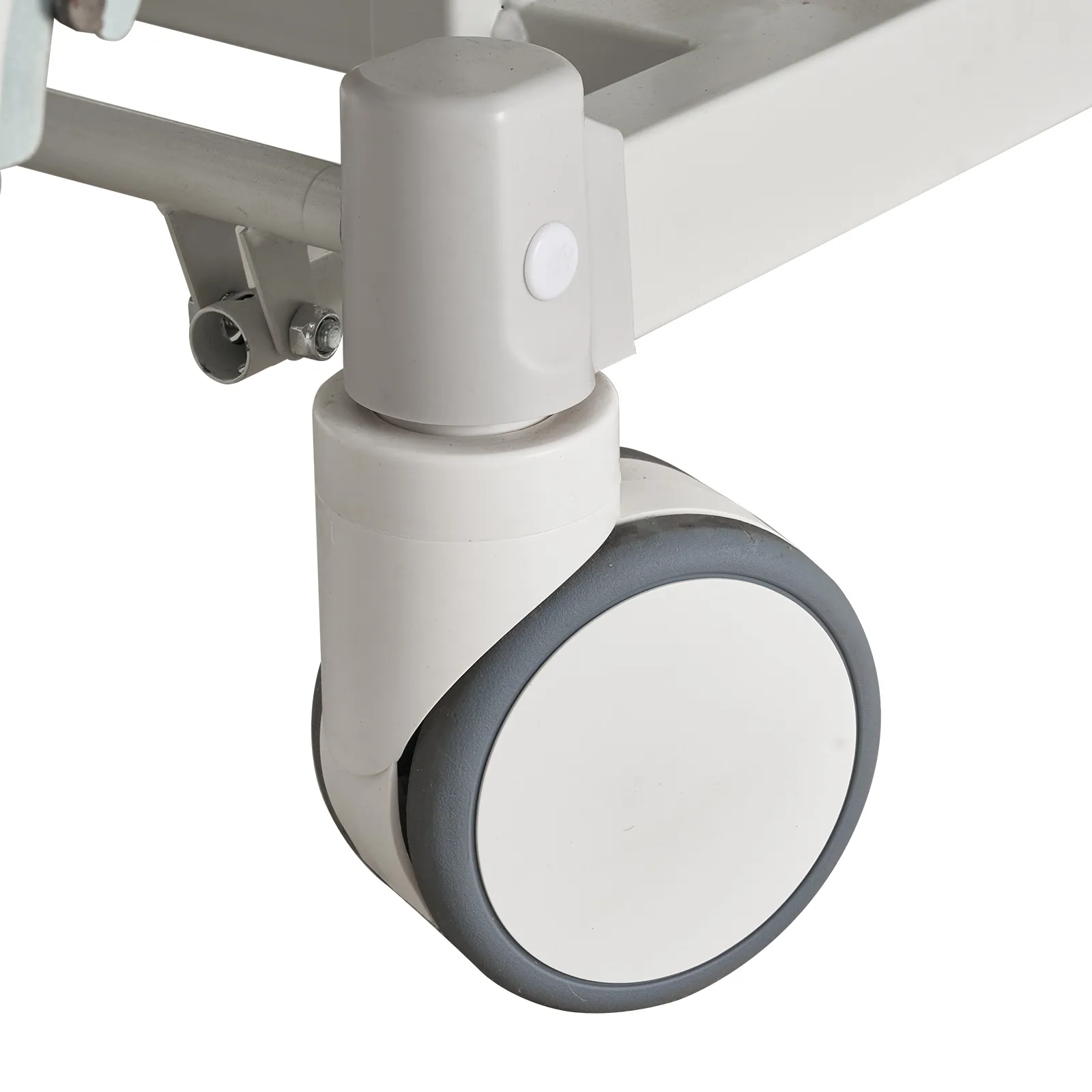 È dotato di un sistema di bloccaggio centralizzato con ruote da 5 pollici e pedali del freno integrati, che consentono di bloccare e sbloccare l'intero letto in modo sicuro.