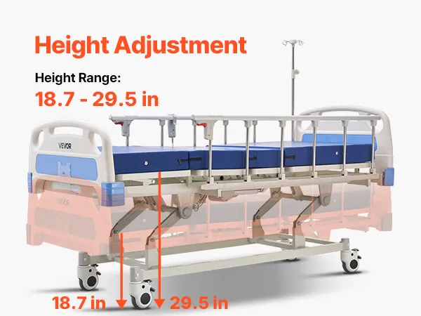 Facile mobilità e bloccaggio sicuro: dotato di quattro ruote girevoli da 12,7 cm con freni, questo letto elettrico per cure mediche si sposta facilmente su diversi tipi di pavimento. I freni di bloccaggio mantengono il letto saldamente in posizione durante il riposo o la cura, per una maggiore stabilità