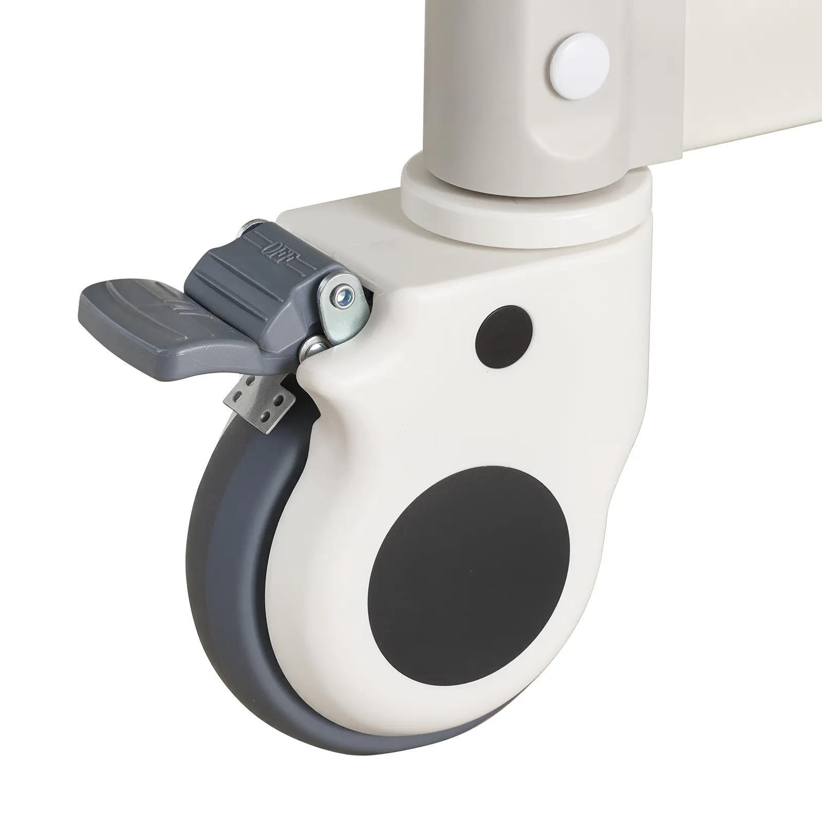 Le rotelle scorrevoli da 12,7 cm consentono di spostarsi facilmente su diversi tipi di pavimentazione, mentre i freni di bloccaggio mantengono il letto saldamente in posizione durante il riposo o la cura.