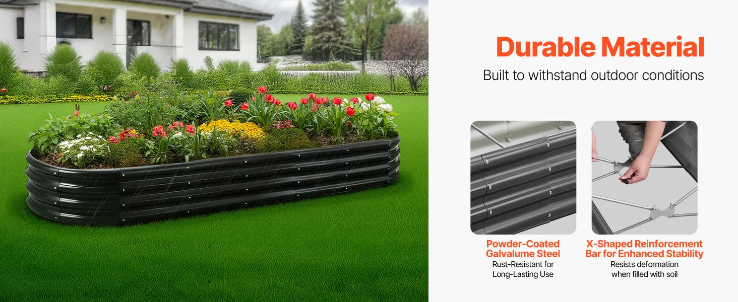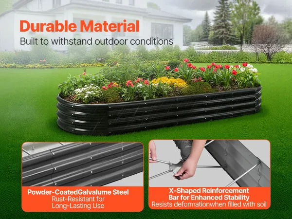 Robusto e affidabile: realizzato con pannelli zincati a polvere antiruggine da 0,4 mm, letto da giardino rialzato in metallo è robusto e costruito per durare. Le 12 barre interne a forma di X aggiungono stabilità per un uso esterno a lungo termine