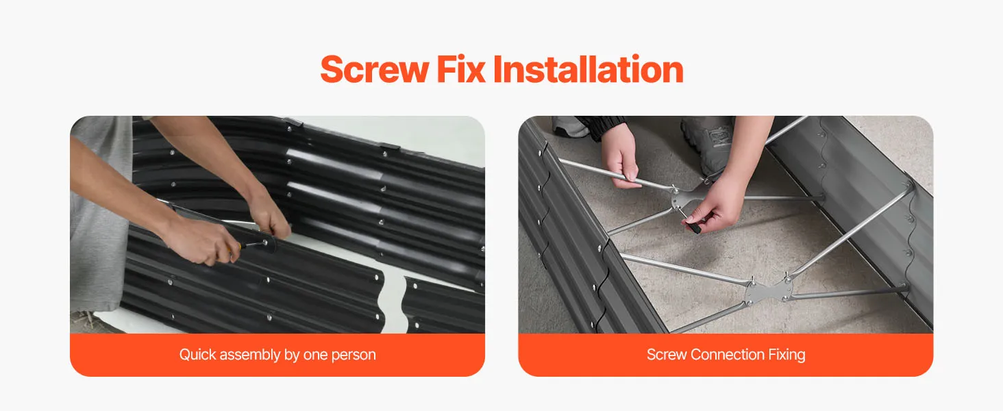 Progettata per un montaggio semplice, questa aiuola rialzata può essere assemblata rapidamente utilizzando viti. Non sono necessari attrezzi complessi, il che la rende adatta anche ai principianti.