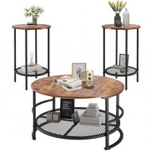 VEVOR Set di 3 Tavolini da Caffè Rotondi, Tavolo da Soggiorno Industriale da 800 mm con 2 Tavolini Laterali, Facili da Montare con Gambe in Metallo, per Ufficio, Soggiorno e Appartamento