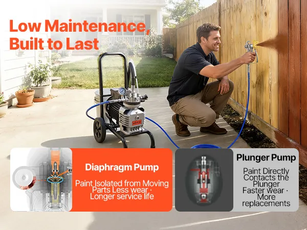 Lunga durata, bassa manutenzione: Lo spruzzatore di vernice airless a membrana riduce l'usura isolando la vernice dai componenti in movimento, rendendo la manutenzione più semplice e le prestazioni più affidabili nel tempo
