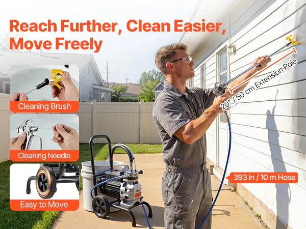Gli accessori personalizzati si adattano a un'ampia gamma di applicazioni in cantiere. Questo spruzzatore elettrico airless semplifica il flusso di lavoro e rende la pulizia più rapida e semplice.