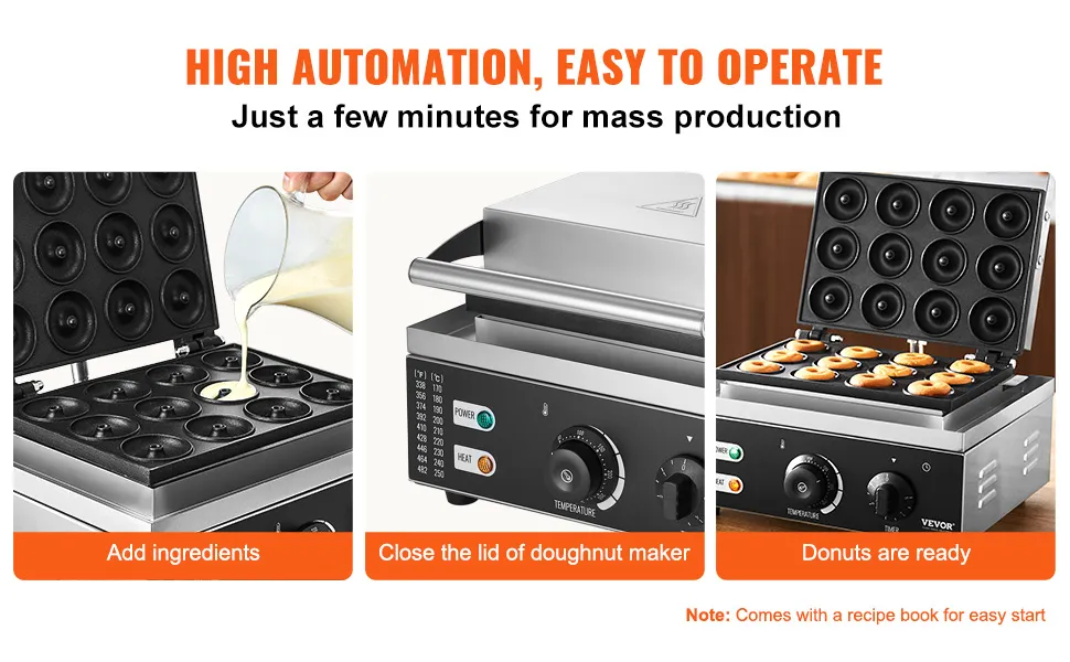 Questa macchina per ciambelle per waffle commerciale è semplice da usare, con un manuale che include ricette per aiutarti a creare gustose ciambelle senza sforzo.