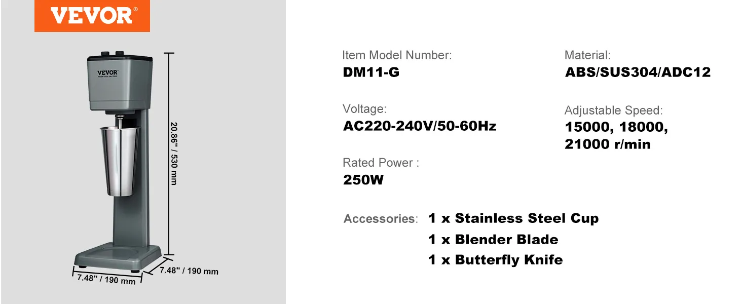 Mixer a Tre Velocità: per soddisfare le diverse preferenze delle bevande, questo mixer per bevande professionale, con manopola di regolazione meccanica della velocità, offre tre velocità. La velocità di 15000 giri al minuto può preparare il normale tè al latte; La velocità di 18000 giri al minuto miscela perfettamente i frullati di frutta; e la velocità di 21000 giri al minuto permette di preparare pasta di riso a grana grossa.