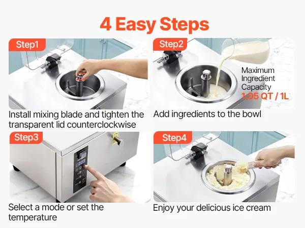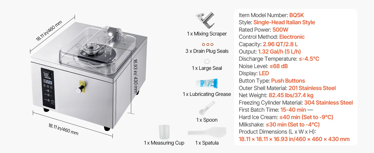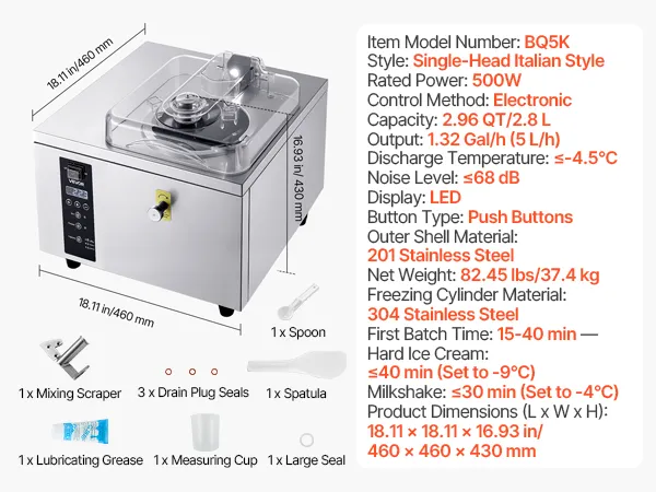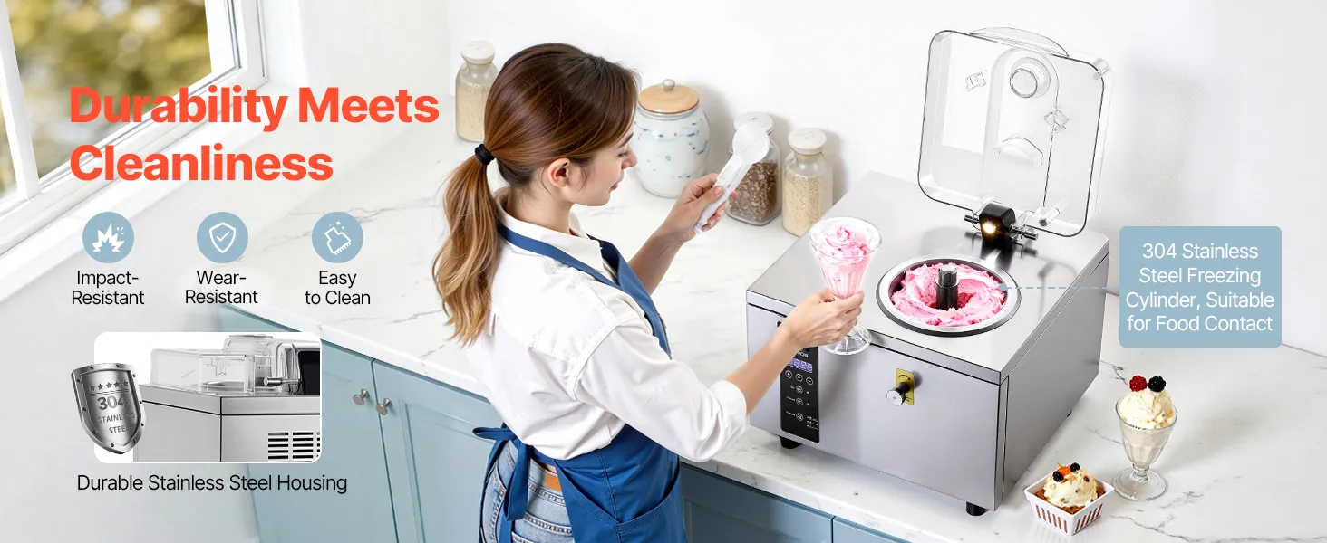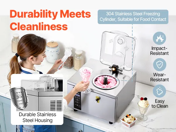 Consistenza liscia e cremosa: dotata di un cilindro di congelamento da 2,8 l (2,96 quarti), la nostra gelatiera professionale italiana utilizza un sistema di miscelazione ad alta velocità