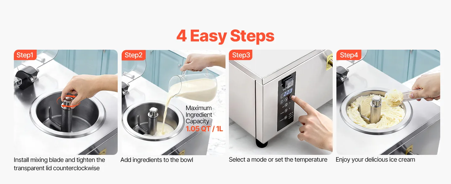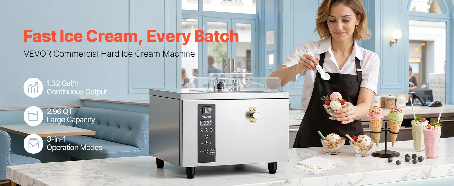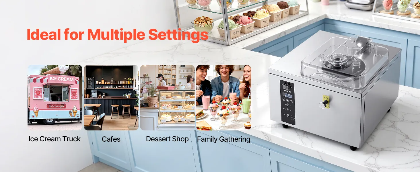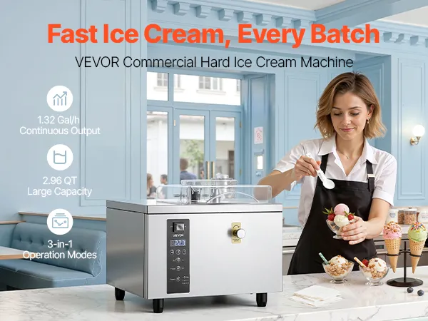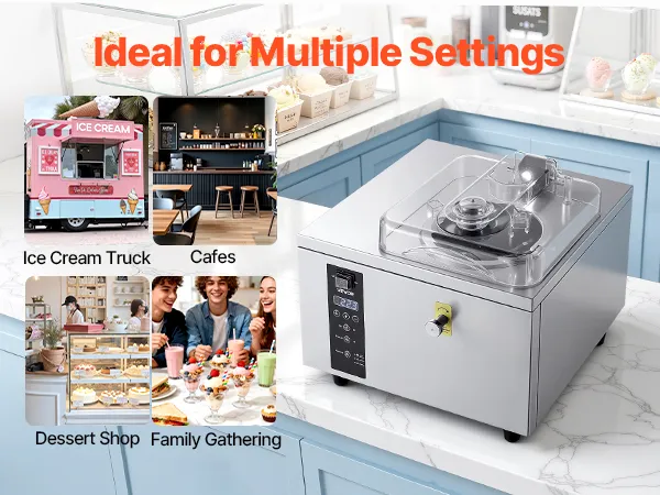 Molteplici utilizzi: ideale per coni, waffle, torte, ecc., il nostro turbo per ice cream è perfetto per gelaterie e bar. Permette anche di preparare grandi quantità per feste e ricevimenti, deliziando tutti i vostri ospiti