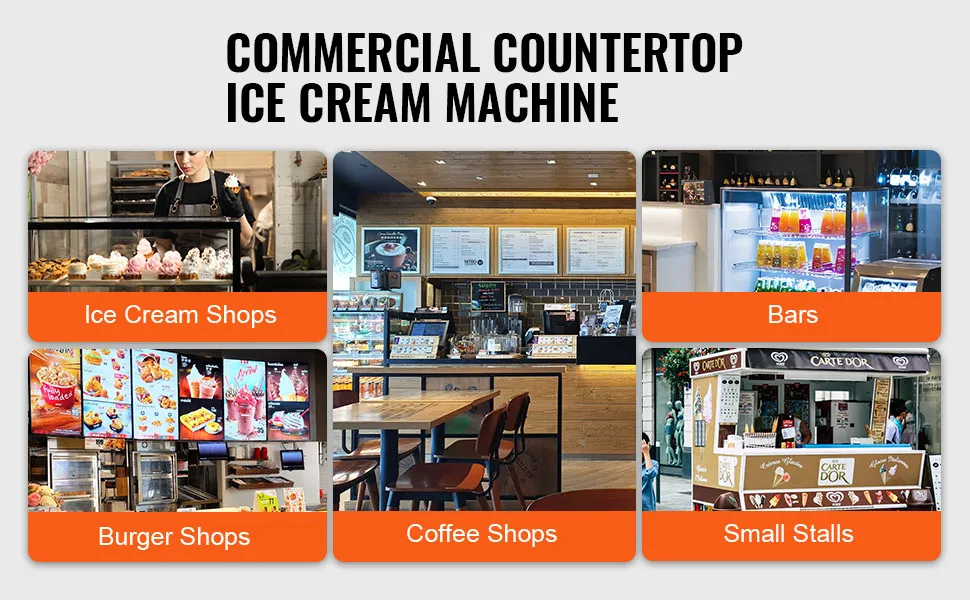 Ideale per una varietà di luoghi commerciali tra cui gelaterie, bar, hamburgerie, bar e piccole bancarelle di cibo. Le dimensioni compatte e la produzione efficiente della gelatiera la rendono un'aggiunta preziosa a qualsiasi struttura di ristorazione.